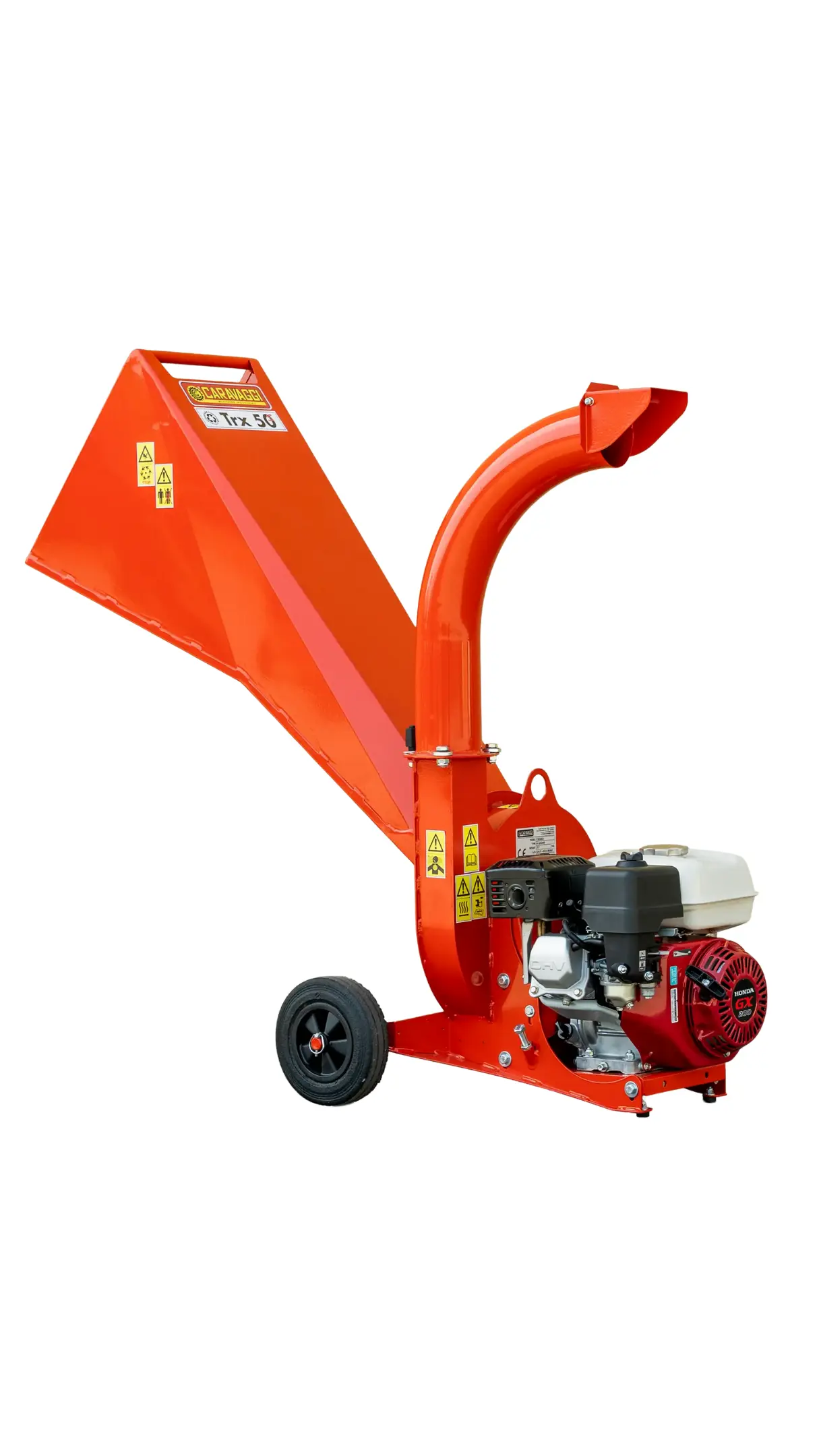 It features a cutting system consisting of a single-blade cutting disc, assisted by 4 fans that aid in discharge. The TRX50 chipper is equipped with a belt transmission, which reduces stress on the engine shaft and rotor.